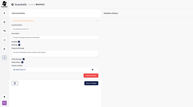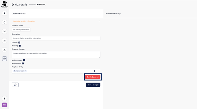 Guardrails control what actions Hapax will allow (or flag/block) based on policy rules.