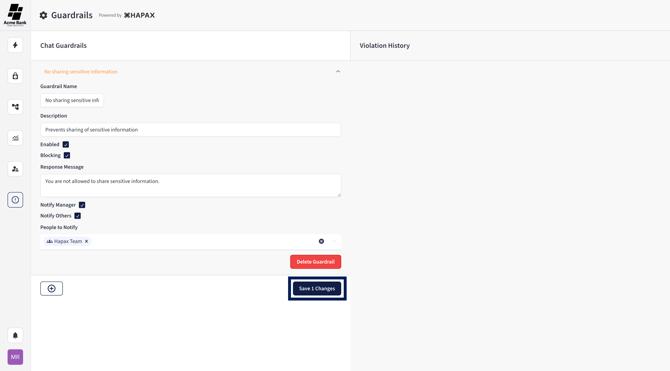 Blocking: If enabled, Hapax blocks requests that trigger this Guardrail.