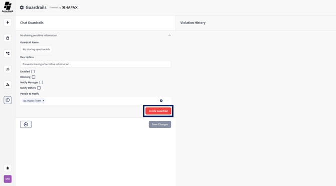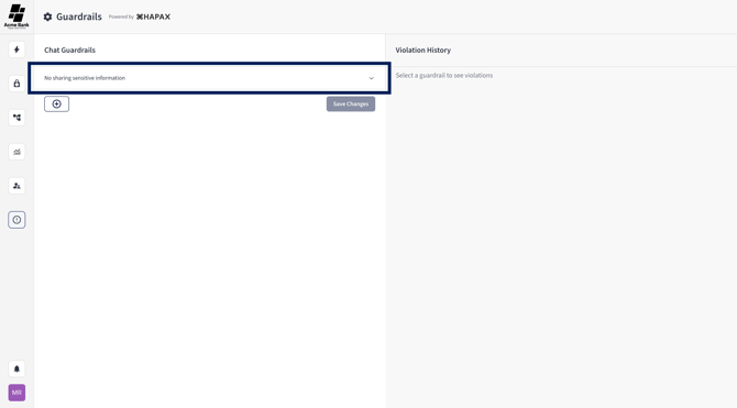 Typically, Guardrails are managed by users with the appropriate admin permissions. If you don’t see the Guardrails icon in the left navigation, contact your Hapax administrator.